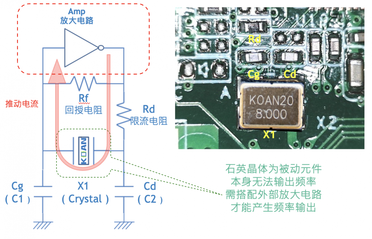 為了滿足諧振條件讓晶振起振正常工作,無源晶振電路還需要兩個電容。其電路設(shè)計可以參考皮爾斯振蕩器電路。