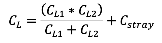 每個晶體的負(fù)載電容值是已知的。如果MCU寫明需要特定負(fù)載電容的諧振器,用戶仍需要精準(zhǔn)匹配外部電容使其正常工作,否則可能會導(dǎo)致不起振。32.768kHz晶體常用的負(fù)載電容有6,7,9,12.5pF。MHz晶體常見的有8,9,12,15,18,20pF。根據(jù)負(fù)載電容選擇匹配電容C1和C2: