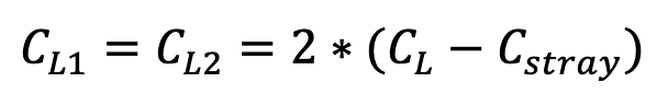 雜散電容Cstray的值一般為4~6pF,大小值取決于電路的走線布局,處理器的引腳電容等。通常匹配電容相等: