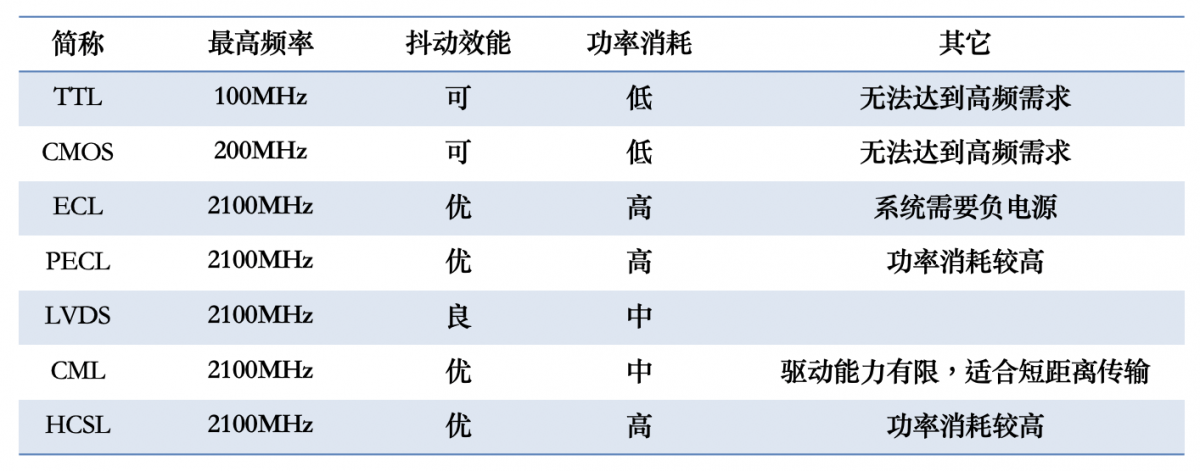 LVDS為低電壓差分信號(hào); HCSL為高速電流驅(qū)動(dòng)邏輯。