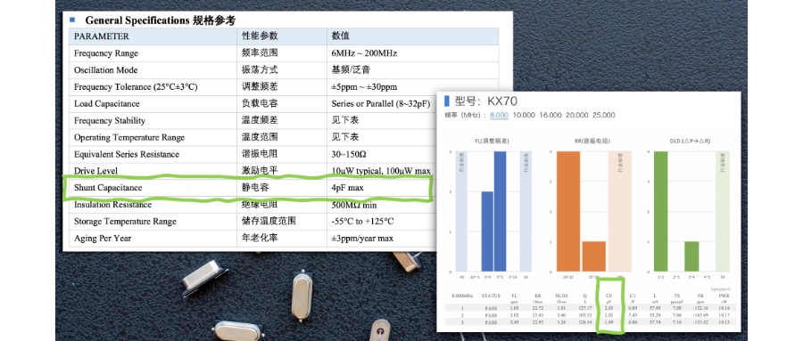 以KOAN晶振KX70為例:8.000MHz的無源晶振C0在產(chǎn)品規(guī)格書中定義為4pF最大,在我們的實際測數(shù)據(jù)中,C0值控制在2pF上下,因此晶振的輸出穩(wěn)定性得到保障。