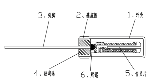 音叉晶振由以下6部分組成: