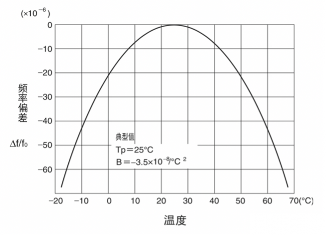 音叉晶體:-0.035ppmx(T-25)^2
