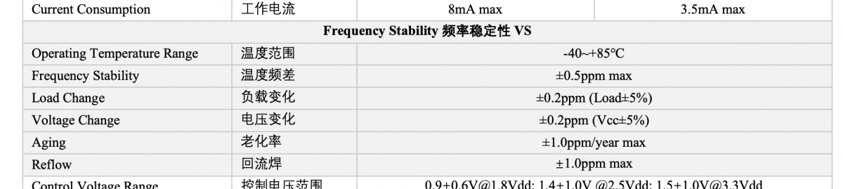 假設(shè)10MHz的溫補晶振(KT20),當(dāng)溫度在-40~85°C之間變化時,它的頻率最多偏離標(biāo)稱值 ±0.5ppm。