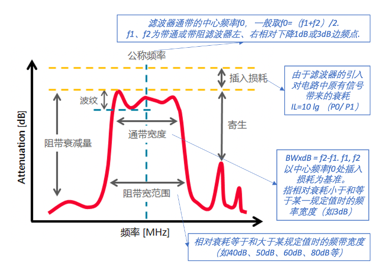 晶體濾波器的主要參數(shù)為中心頻率,通帶寬度,插入損耗,帶內(nèi)波動,阻帶寬度,阻帶損耗,紋波,截止頻率,帶內(nèi)駐波比,阻帶抑制度,延遲,帶內(nèi)相位線性度。