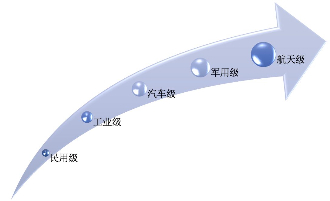 - 軍用和航天(-55~+125℃)對產(chǎn)品的質(zhì)量要求極高。