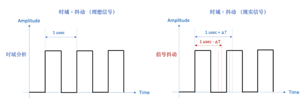 通常使用信號(hào)分析儀(SSA)測(cè)量抖動(dòng)或相位噪聲。如果沒有分析儀,也可以通過公式進(jìn)行計(jì)算: